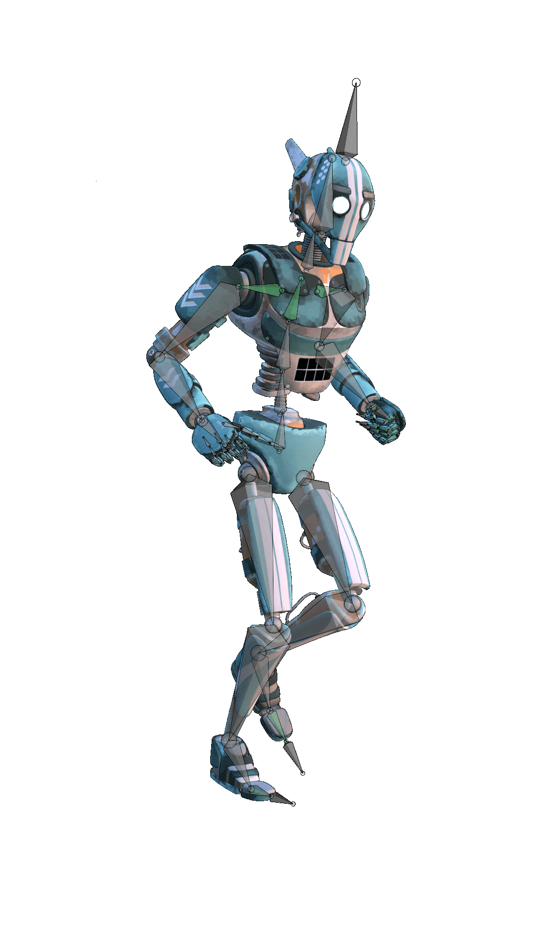 Je crée des rigs sur mesure pour préparer les modèles à l’animation ou j’utilise des solutions existantes lorsque cela est pertinent. Je travaille notamment régulièrement avec les rigs proposés par Mixamo afin d’accélérer certains workflows tout en garantissant un résultat propre et exploitable.